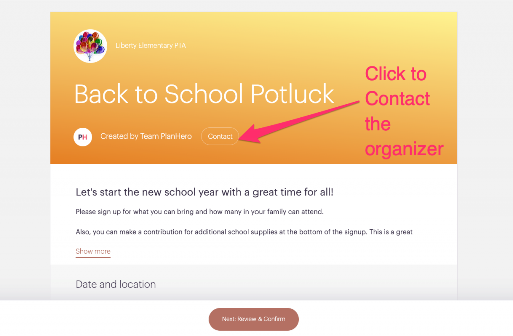 Click on the pink VIEW EVENT PAGE or VIEW/RSVP.