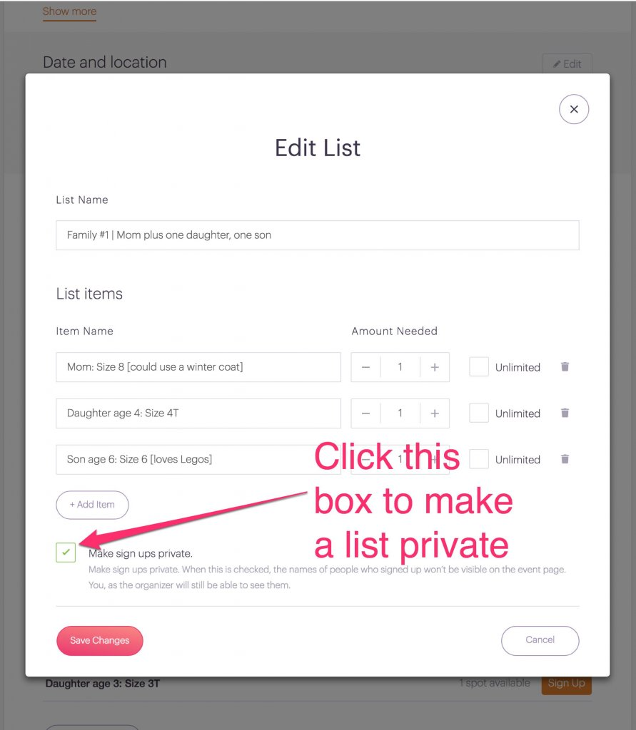 Another example might be when children are involved and the organizer would prefer to make sure the names of the children who sign up are not publicly visible.